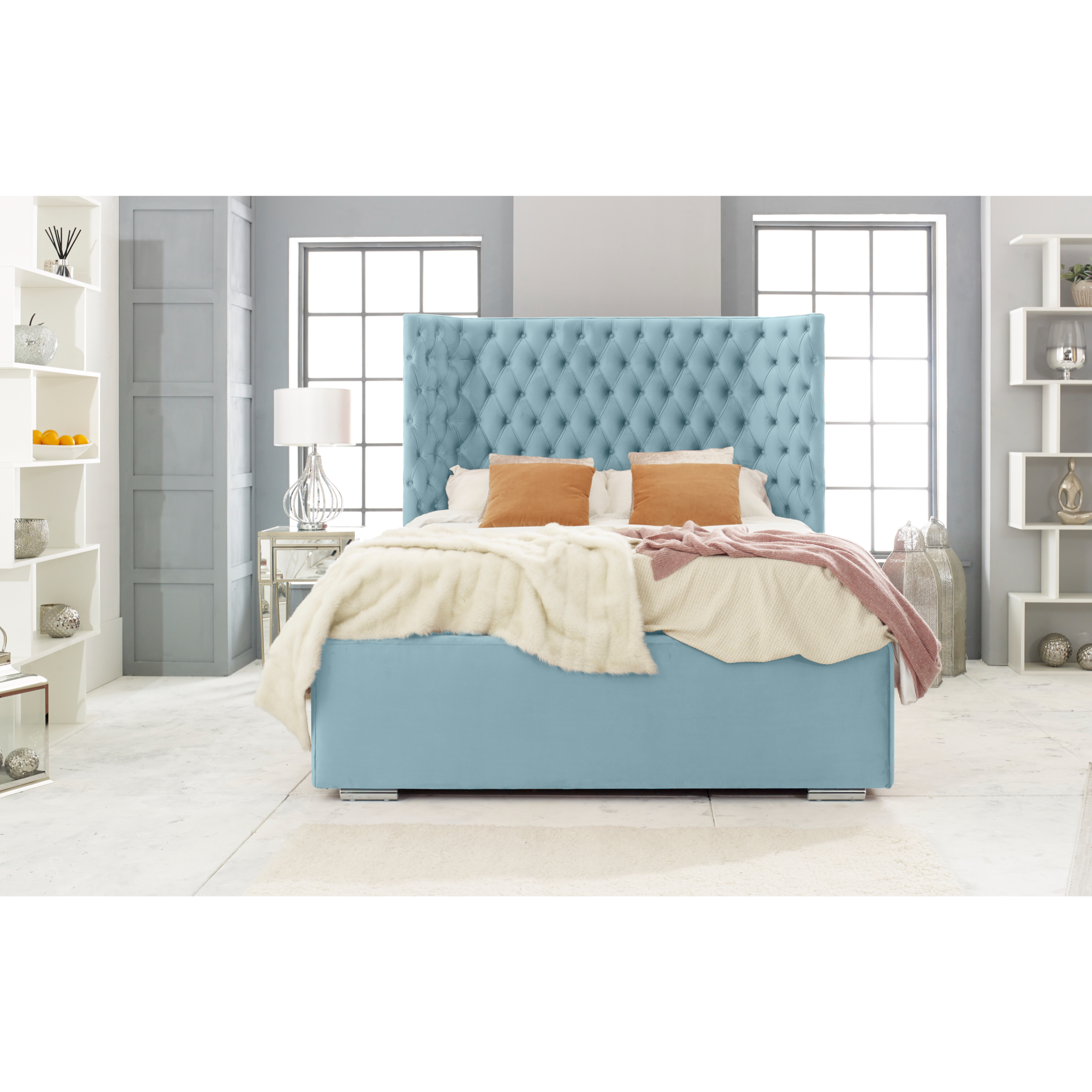 Your bedroom says a lot about you and your bed reflects your true personality. Make a statement with this bespoke bed frame and turn your bedroom into a piece of heaven. The Philly bed frame features extra-thick wings with a plush padding that speaks of comfort and luxury at their best. The upholstered headboard is stylishly and exquisitely designed with buttoned tufts to give a perfect finish to the whole ensemble. The 4-inch solid thick frame, solid board base, and chrome feet ensure stability and durability. The high and wide headboard also makes for a cozy, relaxation spot for your private morning or evening moments. You can choose the Philly in your preferred color.